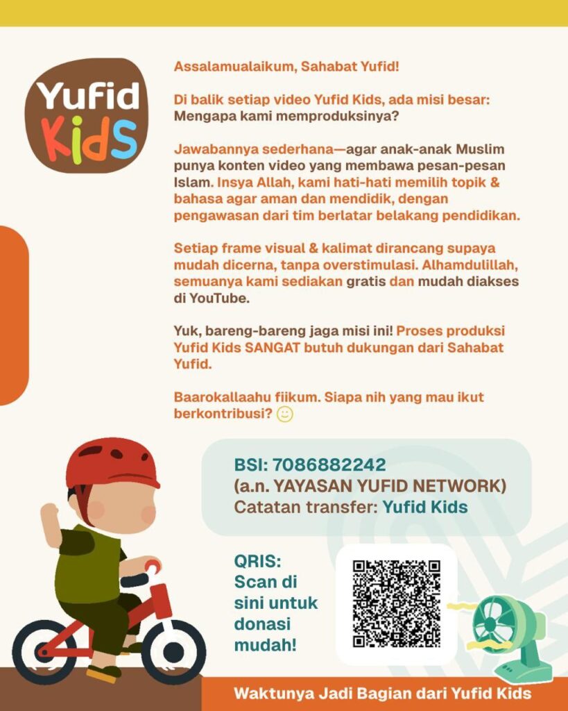 Yuk, bareng-bareng jaga misi ini! Proses produksi Yufid Kids SANGAT butuh dukungan dari Sahabat Yufid.